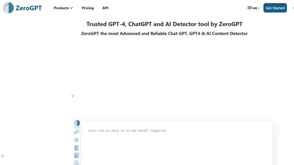 ZeroGPT is an AI content detector and offers various writing tools.