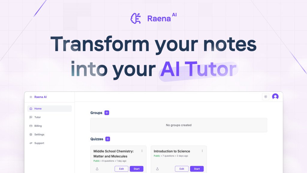 Raena AI transforms study notes into AI-powered quizzes, summaries, and learning tools.